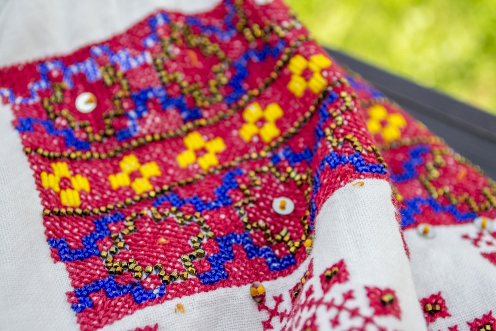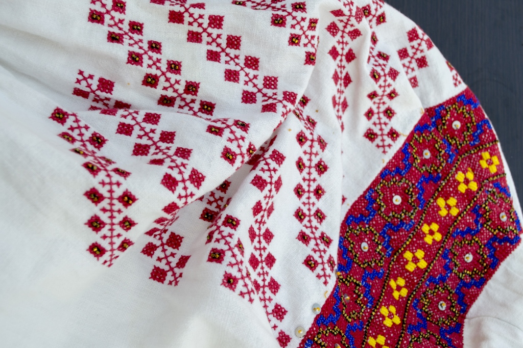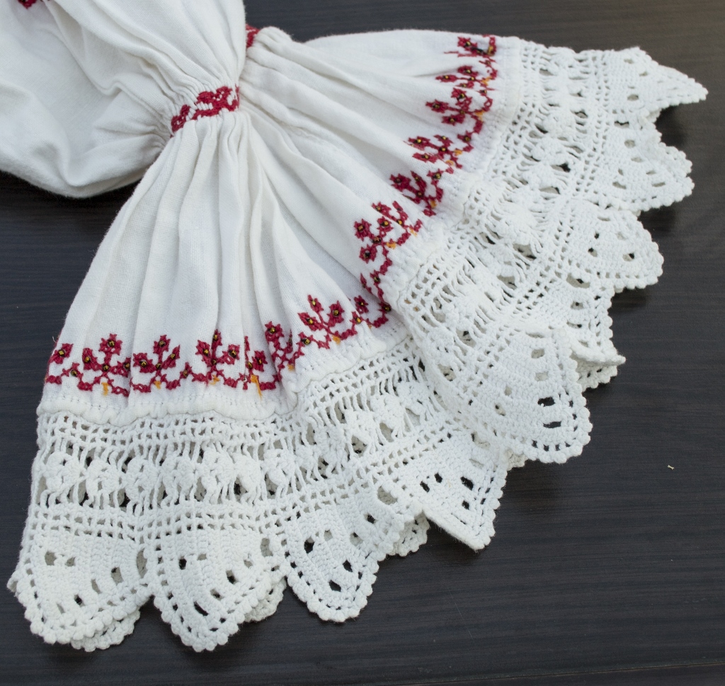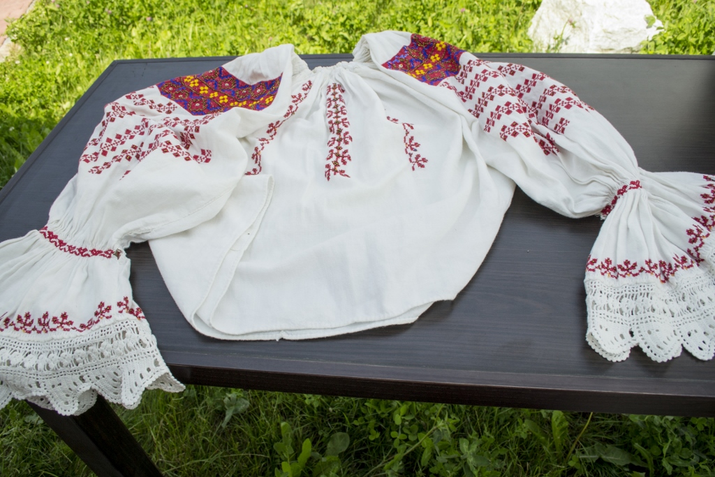 Ia cu care deschid dulapul cu minuni e a mătușii Aurica. Încep cu ea pentru că a fost prima care a răspuns prezent, mi-a adus ia pentru a o fotografia, ”mi-a povestit-o„ și a înțeles iubirea mea pentru detalii, ac și ață, folosite în a povesti pe pânza vieții.